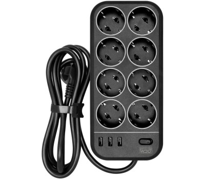 POWERCOM Сетевой фильтр SP-08 USB03AB 3,0М 3м (8 розеток) черный (коробка)