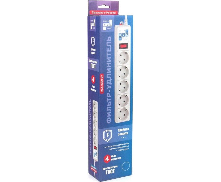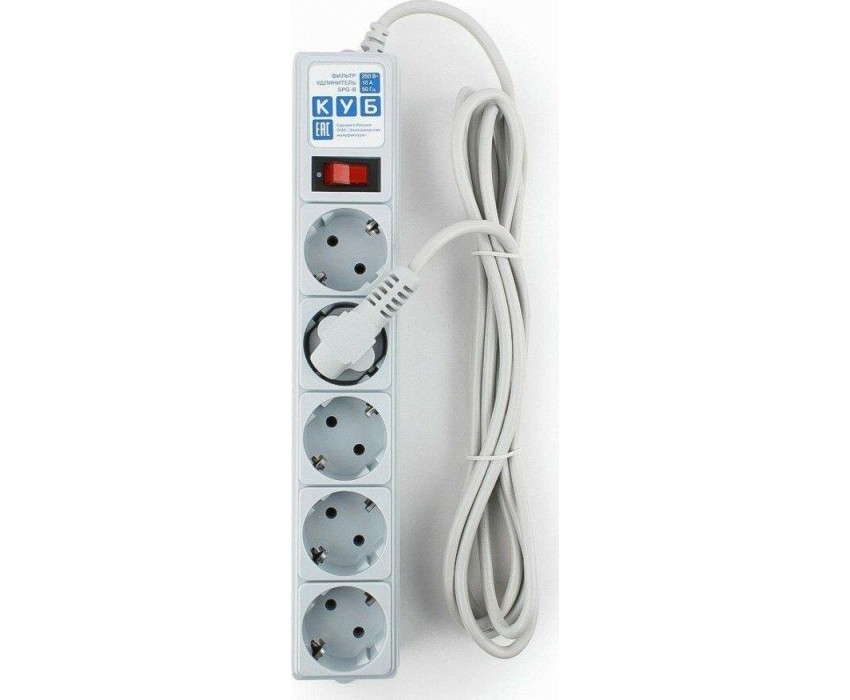 Сетевой фильтр POWER CUBE (00391) SPG-B-10 , 5роз - 3м - серый
