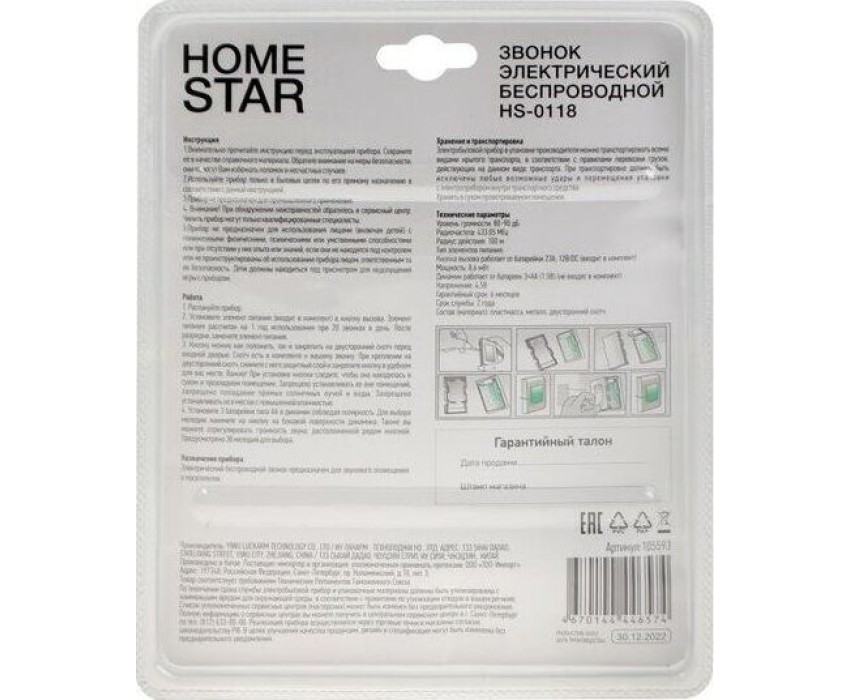 Звонок электрический HOMESTAR HS-0118