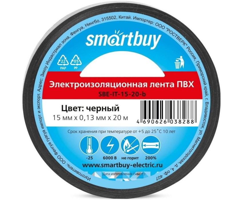 изолента SMARTBUY (SBE-IT-15-20-db) 0,13х15 мм -20 м синий