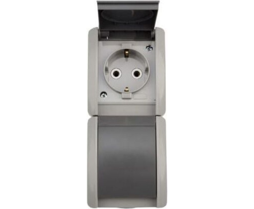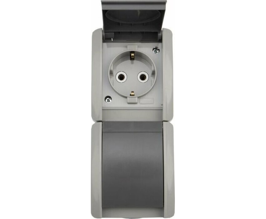 KRANZ (KR-78-0615) БЛОК ВЕРТИКАЛЬНЫЙ 2 РОЗЕТКИ INDUSTRIAL IP54 С ЗАЗЕМЛЕНИЕМ, О/У, СЕРЫЙ