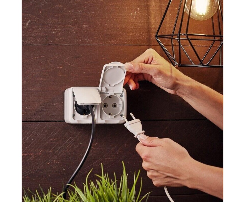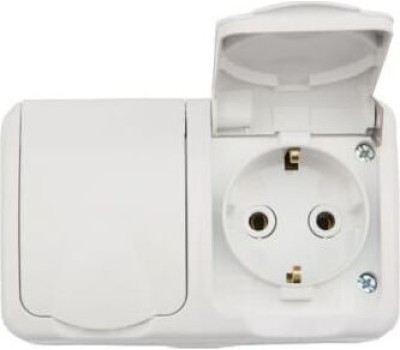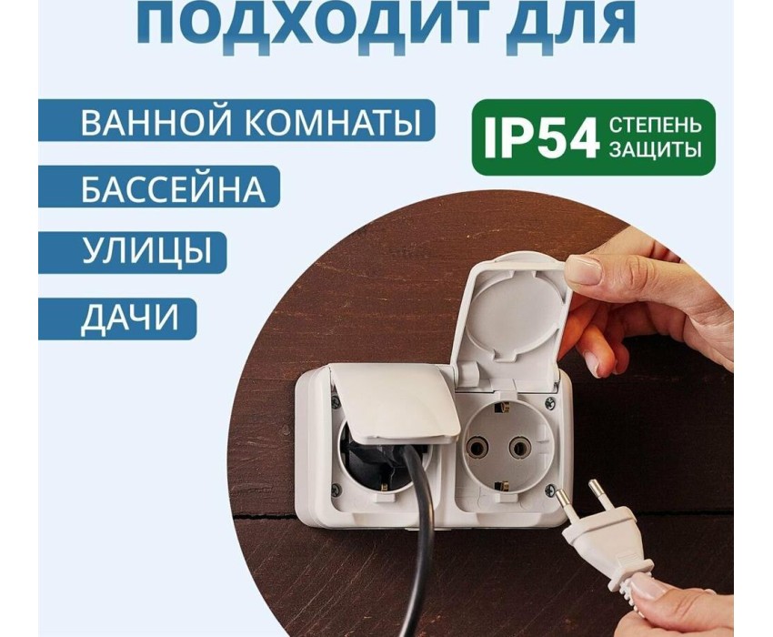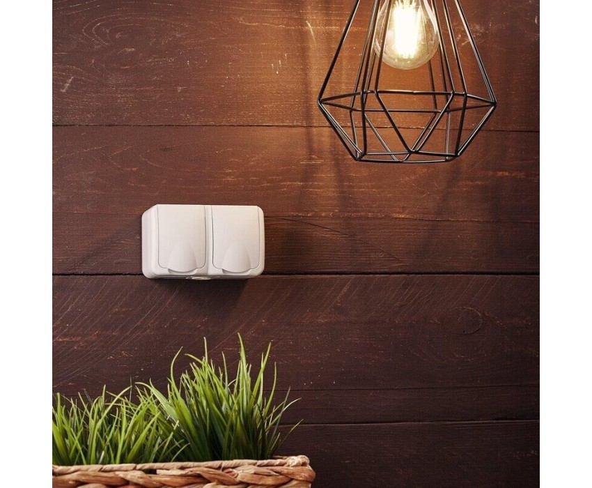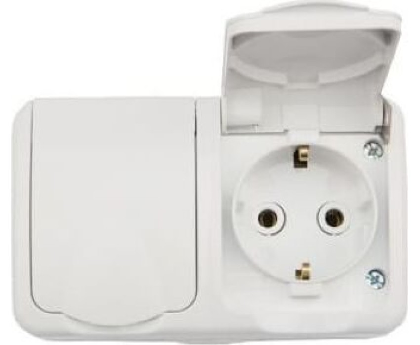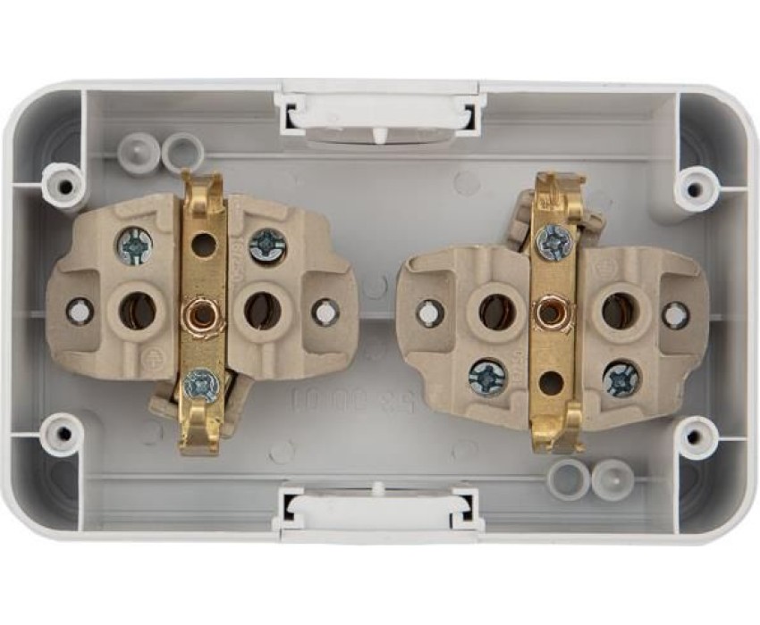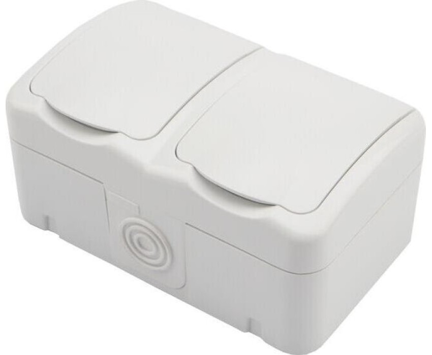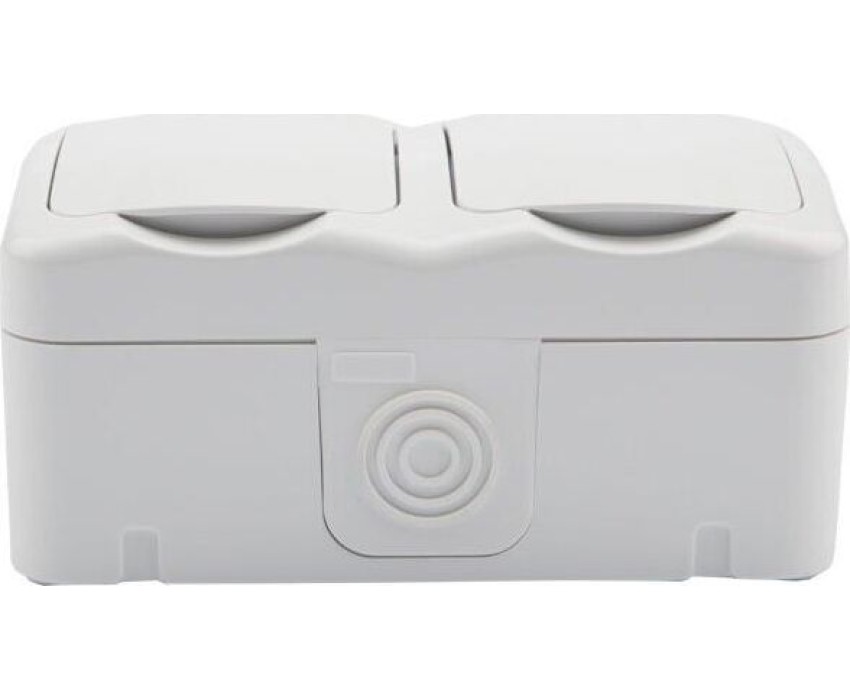 KRANZ (KR-78-0607) БЛОК ГОРИЗОНТАЛЬНЫЙ 2 РОЗЕТКИ (КЕРАМИКА) MINI OG IP54 С ЗАЗЕМЛЕНИЕМ, О/У, БЕЛЫЙ