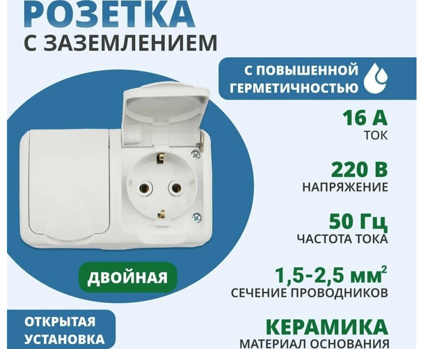 Технические характеристики: Напряжение: 220-250 В Частота тока: 50 Гц Номинальный ток: 16 А Степень защиты: IP54 Сечение проводников: 1,5-2,5 мм? Рабочая температура: -25...+40 °С