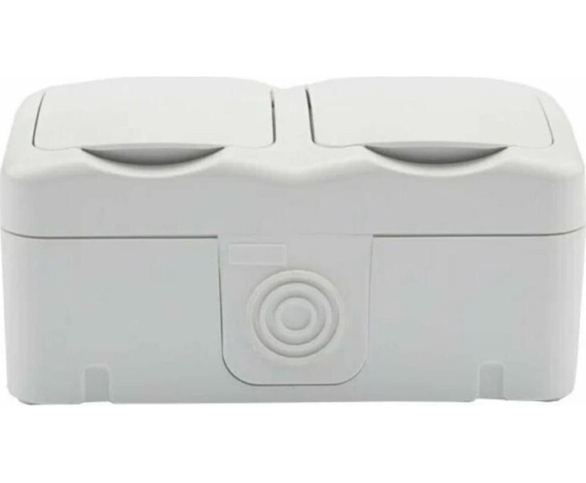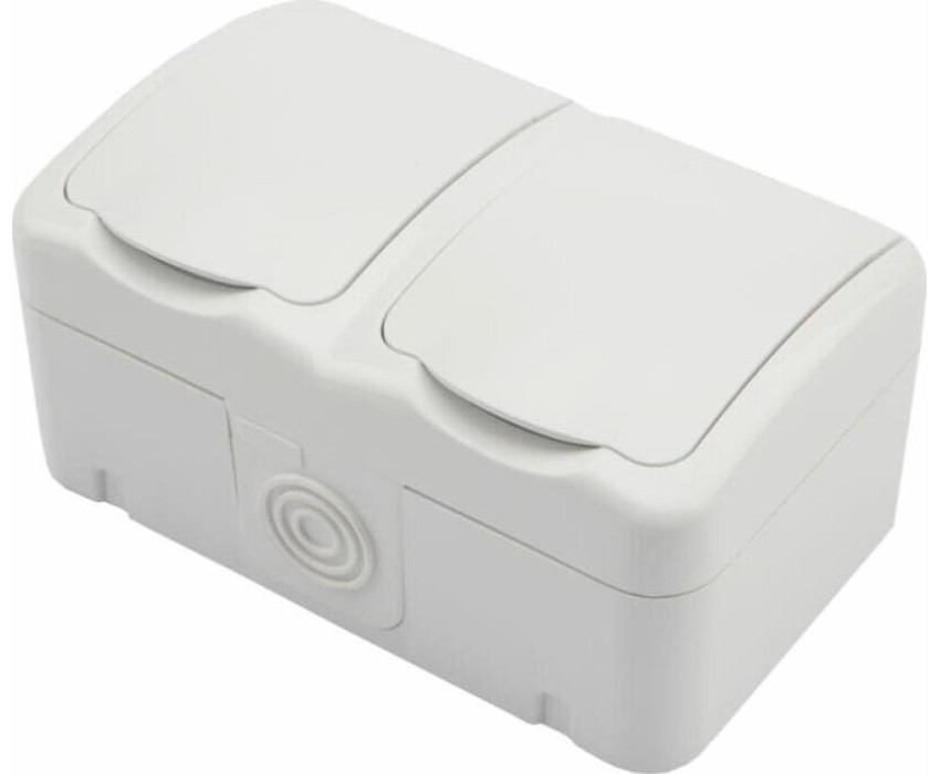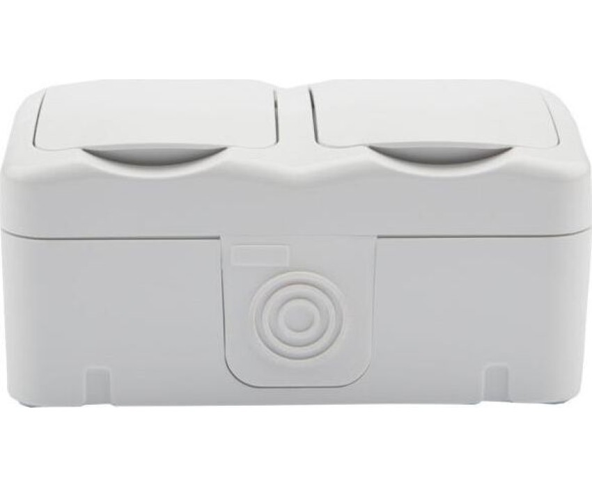 KRANZ (KR-78-0606) БЛОК ГОРИЗОНТАЛЬНЫЙ 2 РОЗЕТКИ MINI OG IP54 С ЗАЗЕМЛЕНИЕМ, О/У, БЕЛЫЙ