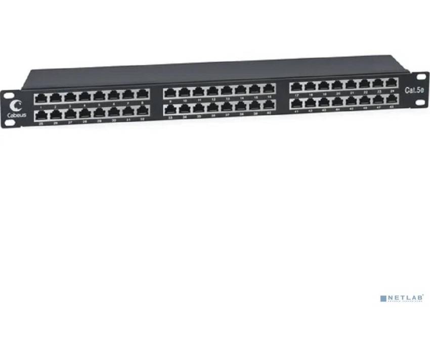 Cabeus PLHD-48-Cat.5e-SH-Dual IDC-1U Патч-панель высокой плотности 19" Высота (1U), 48 портов RJ-45, категория 5e, полностью экранированная, Dual IDC