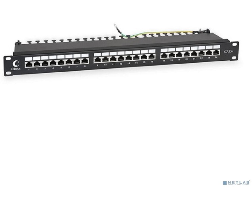 Cabeus PL-24-Cat.6-SH-Dual IDC Патч-панель 19" (1U), 24 порта RJ-45, категория 6, полностью экранированная, с задним кабельным организатором