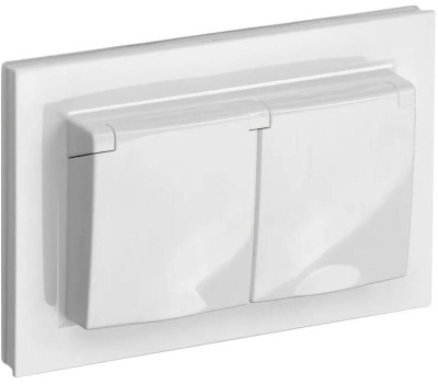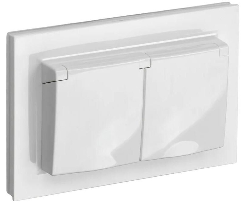 IEK Розетка силов. Brite РСбш12-3-44-БрБ BR-R26-16-44-K01-F двойн. скрыт. зазем. штор. крыш. IP44 белый (упак.:1шт)