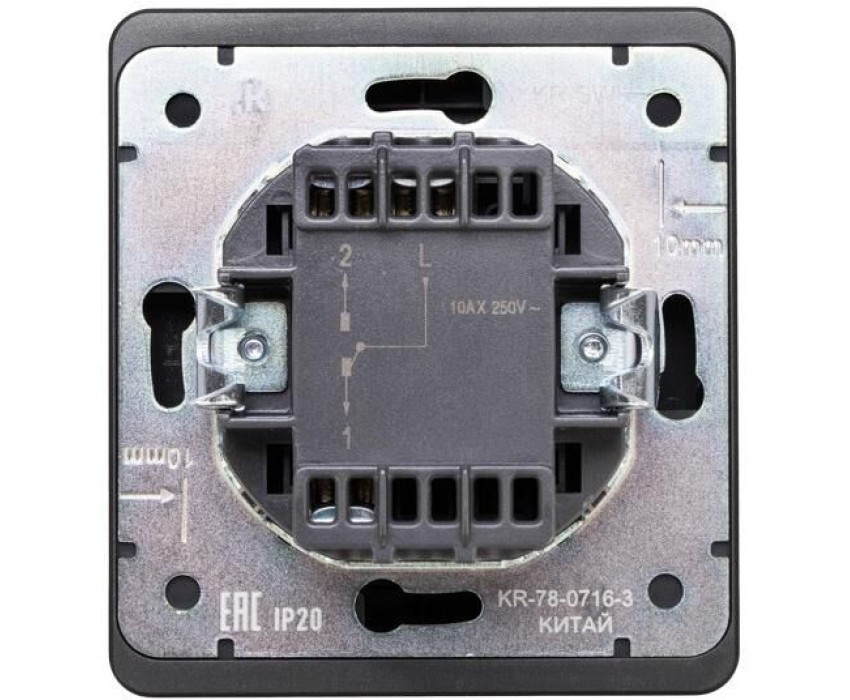 Механизм одноклавишного переключателя скрытой установки KRANZ предназначен для подключения к электрической сети внутри помещений. Используется для управления светом из двух мест. Подсветка позволяет без труда найти выключатель в темном помещении. Благодаря лаконичной форме корпуса и цвету оникс устройство гармонично дополнит любой интерьер. Сечение проводников составляет 1,5-2,5 мм?.