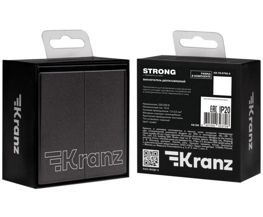 KRANZ Выключатель STRONG 2 кл проходной (переключатель) 10А с/у графит