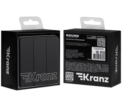 KRANZ Выключатель ROUND 3 кл 10А с/у оникс