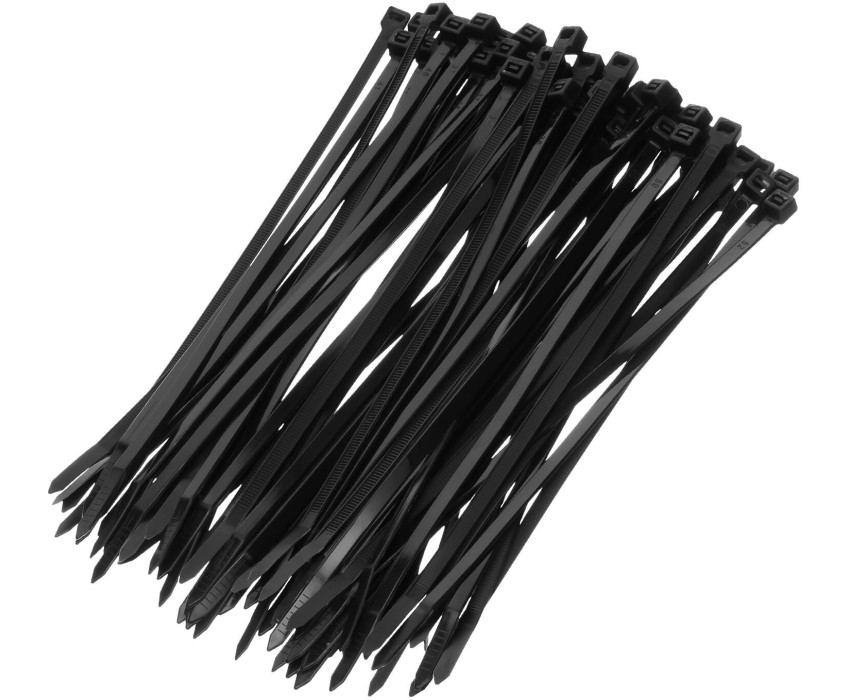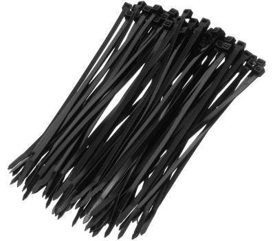 Черные пластиковые хомуты Сибртех 45563, 200 х 4,8 мм, 100 шт. в упаковке, используются для стяжки кабелей, закрепления трубок, шлангов, рекламных конструкций, а также для упаковки различных предметов. Пригодятся во время прокладки электрических и локальных вычислительных сетей, ремонта компьютерной техники, оформлении торговых стендов, комплектовании товара, будут также полезны дома, на даче и в гараже. Преимущества Надежные соединения — кабельные стяжки изготовлены из прочного нейлона. Возможность проведения наружных работ — хомуты устойчивы к ультрафиолету и сохраняют свои свойства при температуре от -35 до +85 ℃. 100 штук в упаковке — набора хватит надолго.
