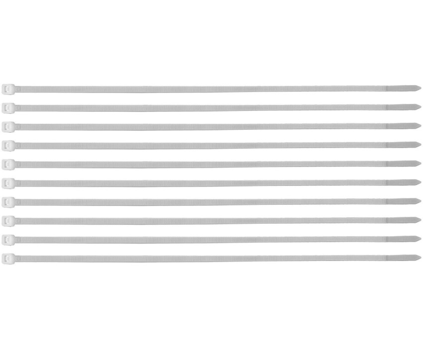 Белые пластиковые хомуты Сибртех 45537, 350 х 4,8 мм, 50 шт. в упаковке, используются для стяжки кабелей, закрепления трубок, шлангов, рекламных конструкций, а также для упаковки различных предметов. Пригодятся во время прокладки электрических и локальных вычислительных сетей, ремонта компьютерной техники, оформлении торговых стендов, комплектовании товара, будут также полезны дома, на даче и в гараже. Преимущества Надежные соединения — кабельные стяжки изготовлены из прочного нейлона. Возможность проведения наружных работ — хомуты устойчивы к ультрафиолету и сохраняют свои свойства при температуре от -35 до +85 ℃. 50 штук в упаковке — набора хватит надолго.
