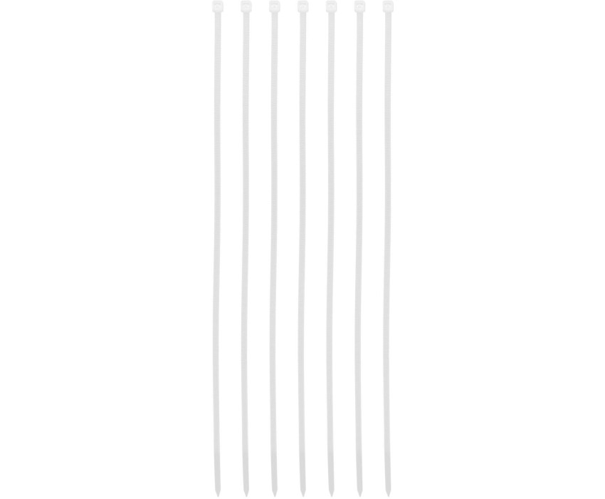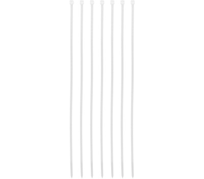 Белые пластиковые хомуты Сибртех 45531, 300 х 3,6 мм, 100 шт. в упаковке, используются для стяжки кабелей, закрепления трубок, шлангов, рекламных конструкций, а также для упаковки различных предметов. Пригодятся во время прокладки электрических и локальных вычислительных сетей, ремонта компьютерной техники, оформлении торговых стендов, комплектовании товара, будут также полезны дома, на даче и в гараже. Преимущества Надежные соединения — кабельные стяжки изготовлены из прочного нейлона. Возможность проведения наружных работ — хомуты устойчивы к ультрафиолету и сохраняют свои свойства при температуре от -35 до +85 ℃. 100 штук в упаковке — набора хватит надолго.