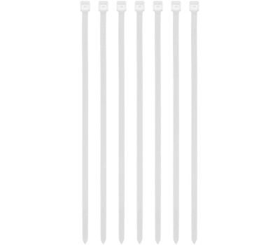 Белые пластиковые хомуты Сибртех 45534, 200 х 4,8 мм, 100 шт. в упаковке, используются для стяжки кабелей, закрепления трубок, шлангов, рекламных конструкций, а также для упаковки различных предметов. Пригодятся во время прокладки электрических и локальных вычислительных сетей, ремонта компьютерной техники, оформлении торговых стендов, комплектовании товара, будут также полезны дома, на даче и в гараже. Преимущества Надежные соединения — кабельные стяжки изготовлены из прочного нейлона. Возможность проведения наружных работ — хомуты устойчивы к ультрафиолету и сохраняют свои свойства при температуре от -35 до +85 ℃. 100 штук в упаковке — набора хватит надолго.