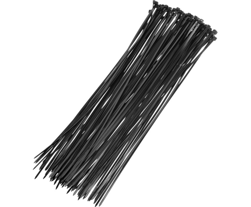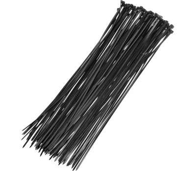 Черные пластиковые хомуты Сибртех 45562, 370 х 3,6 мм, 100 шт. в упаковке, используются для стяжки кабелей, закрепления трубок, шлангов, рекламных конструкций, а также для упаковки различных предметов. Пригодятся во время прокладки электрических и локальных вычислительных сетей, ремонта компьютерной техники, оформлении торговых стендов, комплектовании товара, будут также полезны дома, на даче и в гараже. Преимущества Надежные соединения — кабельные стяжки изготовлены из прочного нейлона. Возможность проведения наружных работ — хомуты устойчивы к ультрафиолету и сохраняют свои свойства при температуре от -35 до +85 ℃. 100 штук в упаковке — набора хватит надолго.