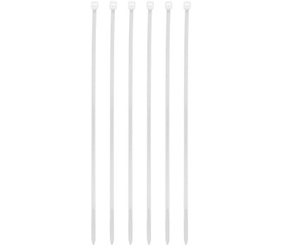 Белые пластиковые хомуты Сибртех 45519, 150 х 2,5 мм, 100 шт. в упаковке, используются для стяжки кабелей, закрепления трубок, шлангов, рекламных конструкций, а также для упаковки различных предметов. Пригодятся во время прокладки электрических и локальных вычислительных сетей, ремонта компьютерной техники, оформлении торговых стендов, комплектовании товара, будут также полезны дома, на даче и в гараже. Преимущества Надежные соединения — кабельные стяжки изготовлены из прочного нейлона. Возможность проведения наружных работ — хомуты устойчивы к ультрафиолету и сохраняют свои свойства при температуре от -35 до +85 ℃. 100 штук в упаковке — набора хватит надолго.