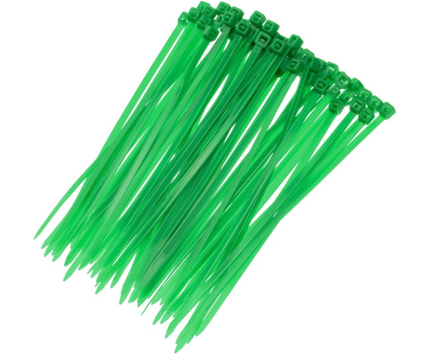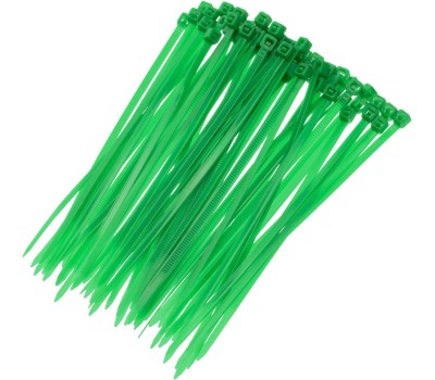Зеленые пластиковые хомуты Сибртех 45510, 100 х 2,5 мм, 100 шт. в упаковке, используются для стяжки кабелей, закрепления трубок, шлангов, рекламных конструкций, а также для упаковки различных предметов. Пригодятся во время прокладки электрических и локальных вычислительных сетей, ремонта компьютерной техники, оформлении торговых стендов, комплектовании товара, будут также полезны дома, на даче и в гараже. Преимущества Надежные соединения — кабельные стяжки изготовлены из прочного нейлона. Возможность проведения наружных работ — хомуты устойчивы к ультрафиолету и сохраняют свои свойства при температуре от -35 до +85 ℃. 100 штук в упаковке — набора хватит надолго.