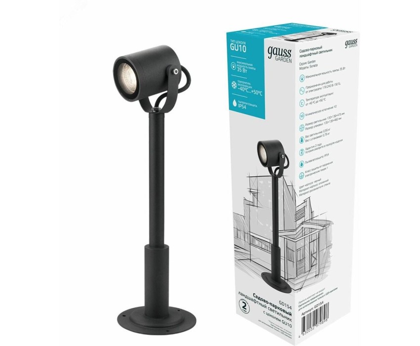 GAUSS Светильник садово-парковый GD154, GD154, черный