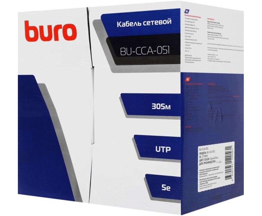 BURO Кабель сетевой BU-CCA-051 UTP 4 пары cat.5E solid 0.51мм CCA 305м серый