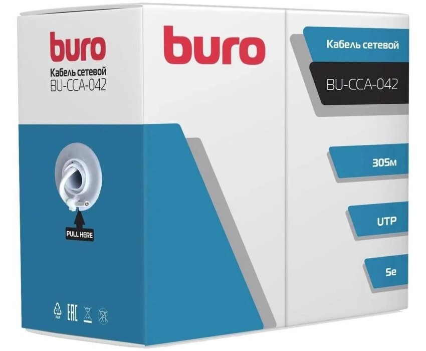 BURO Кабель сетевой BU-CCA-042 UTP 4 пары cat.5E solid 0.42мм CCA 305м серый