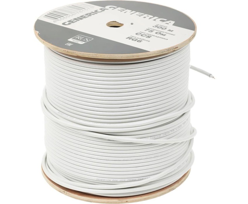 ITK Кабель коаксиальный CC1-R6F1-111-300-G RG-6 FTP 75Om PVC внутренний 300м белый