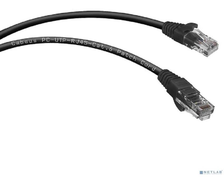 Cabeus PC-UTP-RJ45-Cat.6-1.5m-BK Патч-корд U/UTP, категория 6, 2xRJ45/8p8c, неэкранированный, черный, PVC, 1.5м