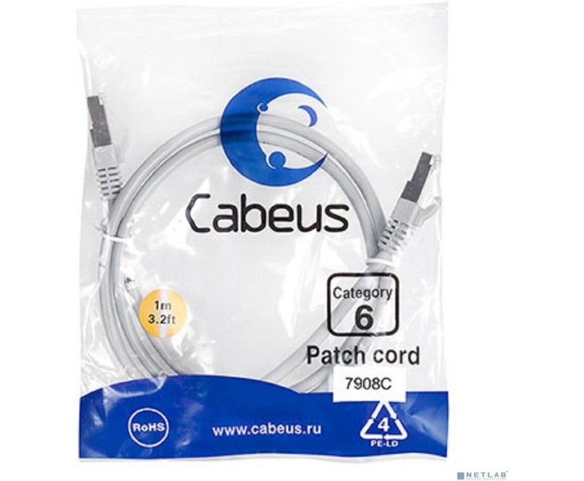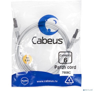 [Cabeus Патч-корды (сетевые, телефонные)] Cabeus PC-FTP-RJ45-Cat.6-1m-LSZH Патч-корд F/UTP, категория 6, 2xRJ45/8p8c, экранированный, серый, LSZH, 1м