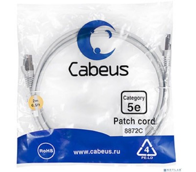 Cabeus PC-FTP-RJ45-Cat.5e-2m-LSZH Патч-корд F/UTP, категория 5е, 2xRJ45/8p8c, экранированный, серый, LSZH, 2м