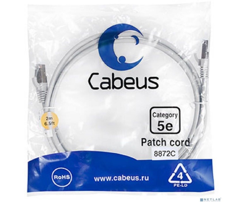 [Cabeus Патч-корды (сетевые, телефонные)] Cabeus PC-FTP-RJ45-Cat.5e-2m-LSZH Патч-корд F/UTP, категория 5е, 2xRJ45/8p8c, экранированный, серый, LSZH, 2м