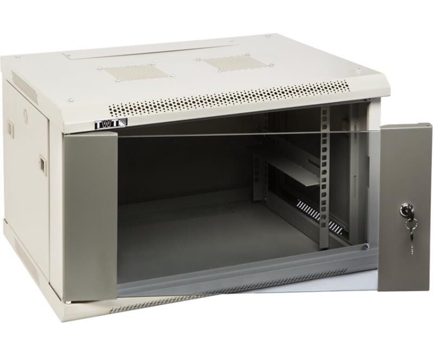 LANMASTER Шкаф коммутационный TWT-CBWPG-12U-6X6-GY настенный, стеклянная передняя дверь, 12U, 600x600 мм