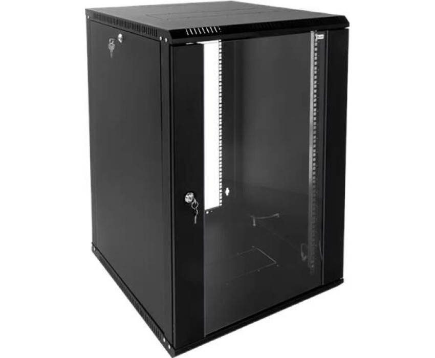 Электроника / Телекоммуникационные шкафы ЦМО Шкаф коммутационный ШРН-Эконом ШРН-Э-18.500-9005 настенный, стеклянная передняя дверь, 18U, 600x520 мм