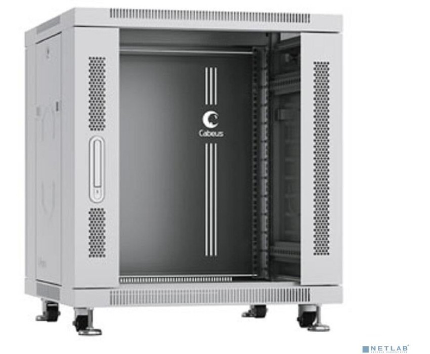 [Cabeus Монтажные шкафы] Cabeus SH-05C-12U60/60 Шкаф монтажный телекоммуникационный 19" напольный для распределительного и серверного оборудования 12U 600x600x730mm (ШхГхВ) передняя стеклянная и задняя сплошная металлическая