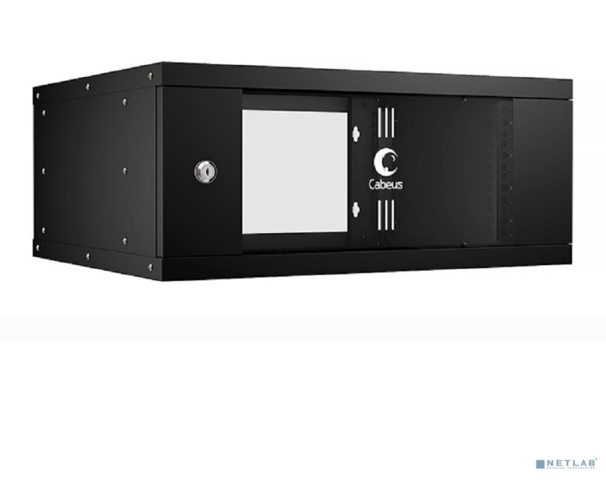 [Cabeus Монтажные шкафы] Cabeus WSC-05D-4U55/45-BK Шкаф телекоммуникационный настенный 19" 4U, серия LIGHT разборный, дверь стекло, цвет черный