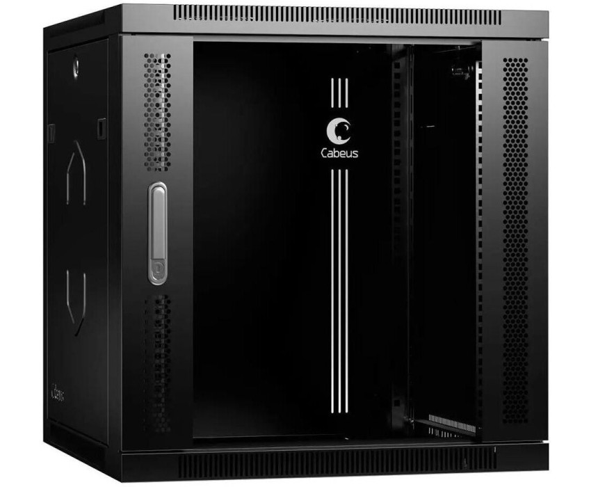 CABEUS Шкаф коммутационный SH-05F-12U60/60-R-BK настенный, стеклянная передняя дверь, 12U, 600x635x600 мм