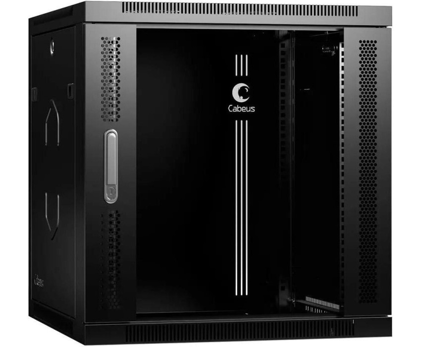 CABEUS Шкаф коммутационный SH-05F-12U60/45-R-BK настенный, стеклянная передняя дверь, 12U, 600x635x450 мм