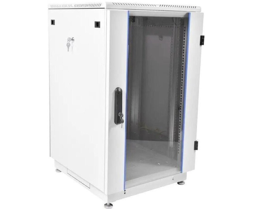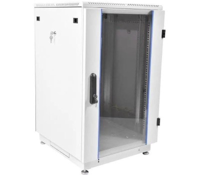 ЦМО Шкаф коммутационный (ШТК-М-18.6.6-1ААА) напольный 18U 600x600мм пер.дв.стекл задн.дв.стал.лист 2 бок.пан. направл.под закл.гайки 270кг серый 455мм 48.6кг 180град. 960мм