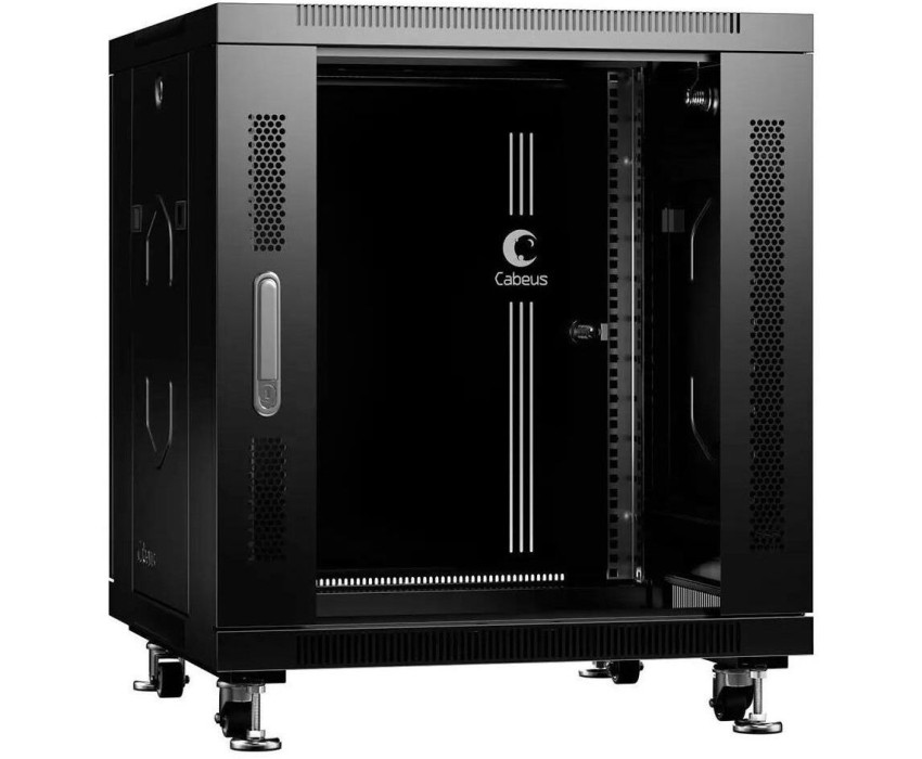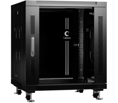 CABEUS Шкаф коммутационный (SH-05C-12U60/60-BK) напольный 12U 600x600мм пер.дв.стекл металл 800кг черный 500мм 730мм IP20 сталь