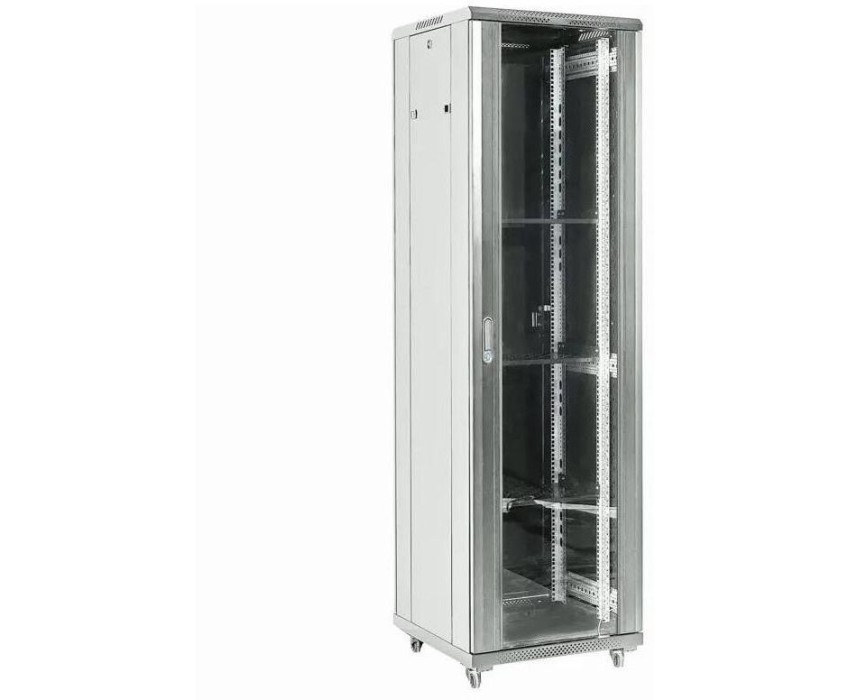 REXANT Шкаф коммутационный (04-3266-211) напольный 32U 600x600мм пер.дв.стекл металл 2 бок.пан. направл.под винты 800кг серый 67кг 230град. 1609мм IP20 сталь