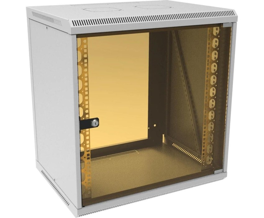 SUPRLAN Шкаф коммутационный (05-1203) настенный 12U 600x450мм пер.дв.стекл направл.под закл.гайки 70кг светло-серый 385мм 21.94кг 620мм металл