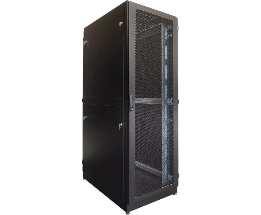 ЦМО Шкаф серверный (ШТК-М-42.8.12-48АА-9005) напольный 42U 800x1200мм пер.дв.перфор. задн.дв.перфор.2-хст. направл.под закл.гайки 1200кг черный 1055мм 176кг 180град. 2030мм IP20 металл