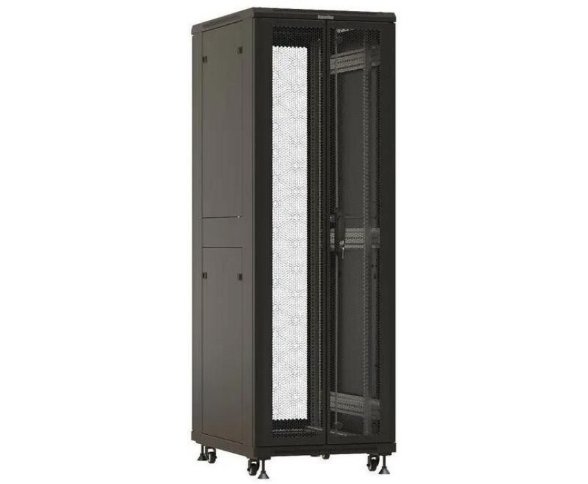 HYPERLINE Шкаф серверный (TTBR-4261-DD-RAL9004) напольный 42U 600x1000мм пер.дв.перфор.2ств. задн.дв.перфор.2-хст. 2 бок.пан. направл.под закл.гайки 800кг черный 910мм 122.2кг 2055мм IP20 сталь