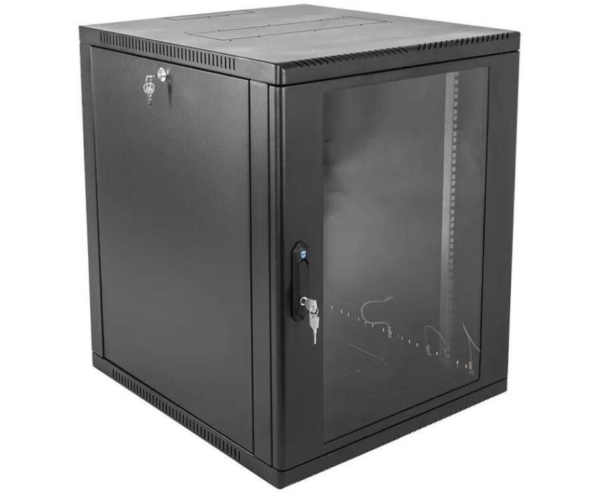 ЦМО Шкаф коммутационный (ШРН-12.500-9005) настенный 12U 600x529мм пер.дв.стекл 200кг черный 470мм 18кг 180град. 612мм металл