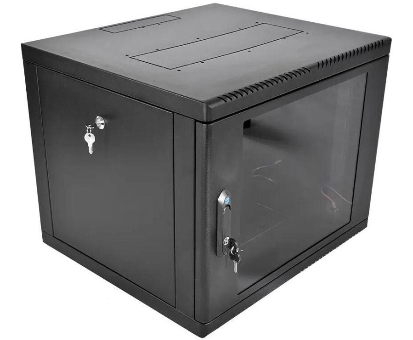 ЦМО Шкаф коммутационный (ШРН-М-9.500-9005) настенный 9U 600x520мм пер.дв.стекл 130кг черный 456мм 19.35кг 180град. 480мм IP20 сталь