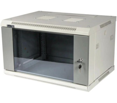 LANMASTER Шкаф коммутационный (TWT-CBWPG-18U-6X6-GY) настенный 18U 600x600мм пер.дв.стекл задн.дв.спл.стал.лист 60кг серый 45кг 902мм
