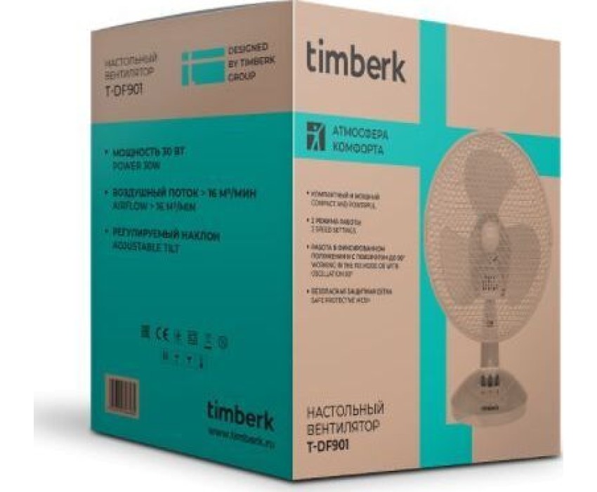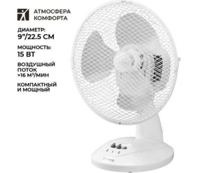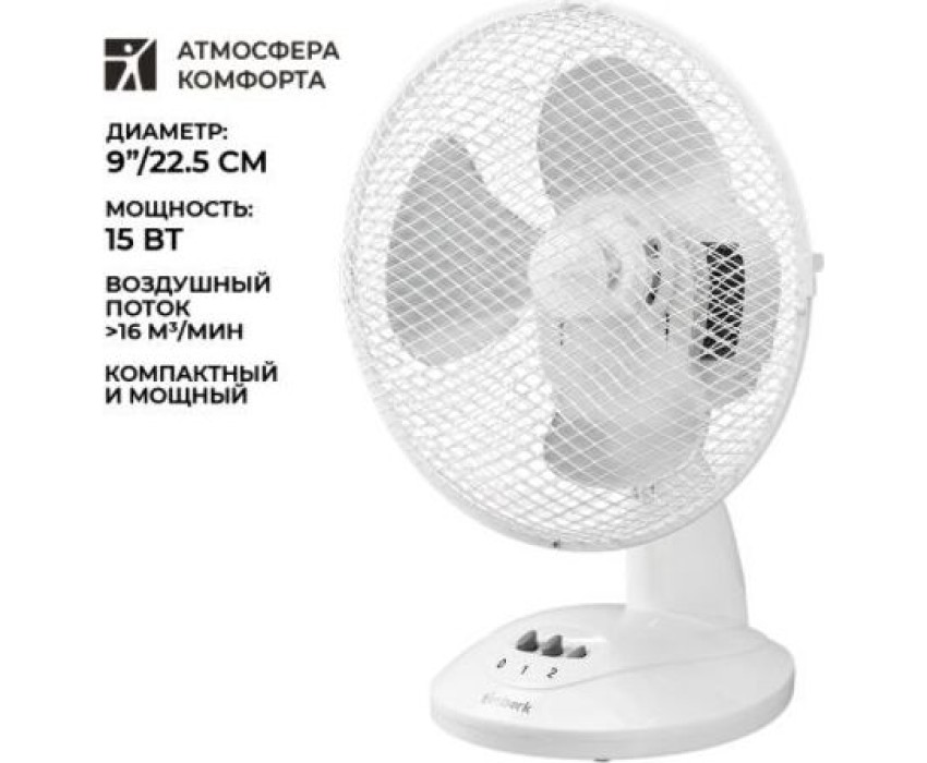 Настольный вентилятор 9", белый T-DF901. Компактный и мощный, 2 скорости воздушного потока, Безопасная защитная сетка, Работа в фиксированном положении и с поворотом до 90°, Регулируемый угол наклона, Удобство в использовании, Диаметр: 9”/22.5 см, Мощность: 30 Вт, Воздушный поток >16 м3/мин, Вес нетто: 1.2 кг, Размеры прибора: 370х210x370 мм