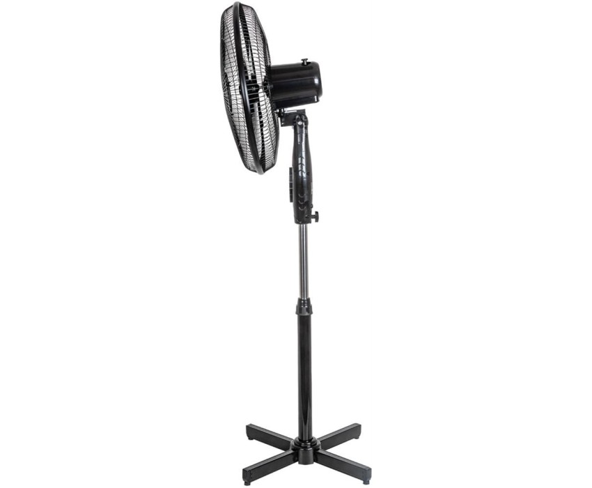 Вентилятор напольный Диаметр 16 “ 3 лопасти 3 скорости Вращение на 90° Регулировка угла наклона Режим осцилляции Устойчивое основание для размещения на полу Мощность 50 Вт Скорость вращения 1300 об/мин Материал: полипропилен Размер 45x45x125см