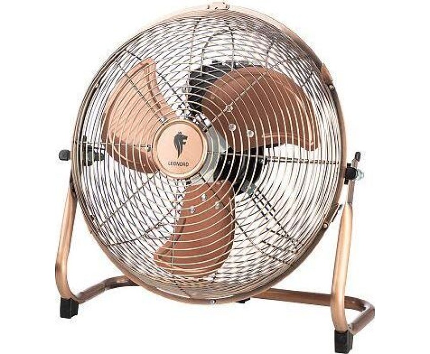 Диаметр 12" Высота 40 см 3 скорости Металлический корпус Алюминиевые лопасти Современный дизайн Медный цвет Регулировка наклона Длина шнура 129 см Мощность 45 Вт Гарантия 2 года