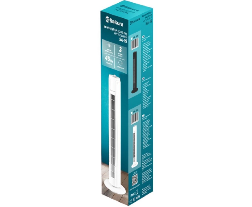 Вентилятор-колонна напольный, 45 Вт, механ. управление, 3 режима, защитная решетка, высота 81см, круглая подставка, вращение, шнур питания 1,3м