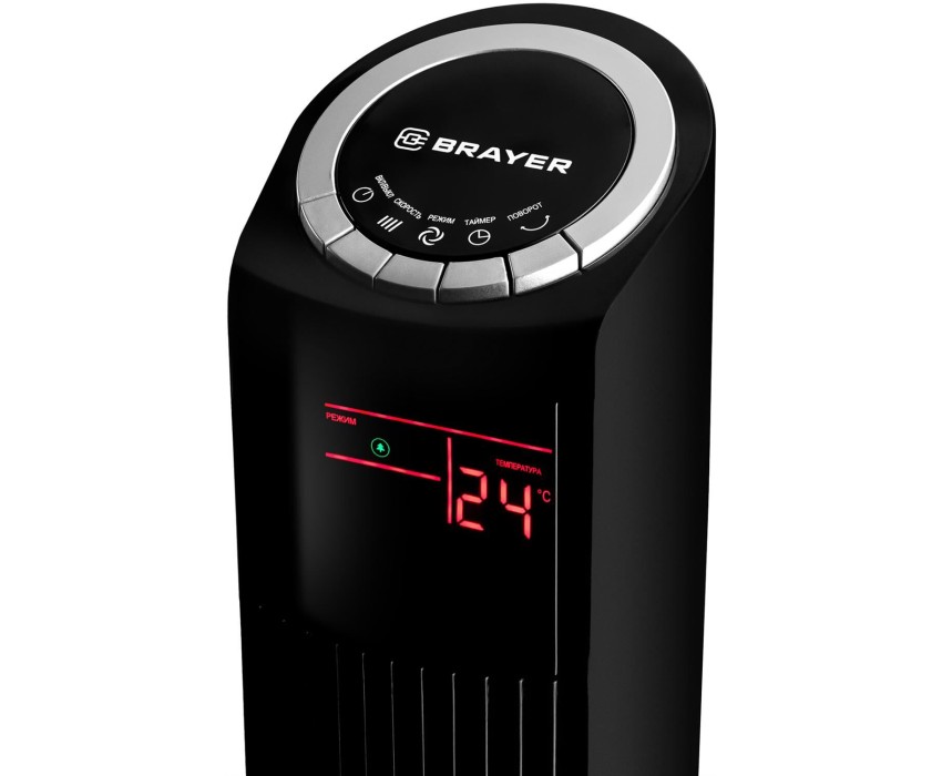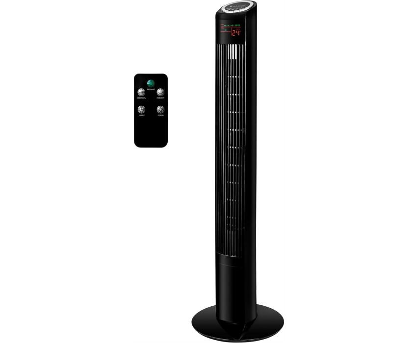 LED-дисплей с индикацией режимов работы 3 скорости воздушного потока 3 режима работы: обычный, бриз, ночной Таймер 1-12ч Пульт дистанционного управления Устойчивая конструкция с вращением корпуса на 70° Мощность 45 Вт Высота вентилятора 124 см Электропитание 220-240V ~ 50 Гц