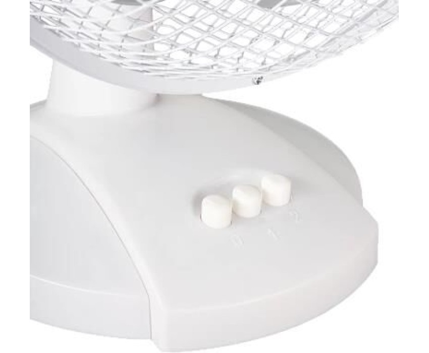 Настольный Мощность, Вт: 40 Количество скоростных режимов: 2 Размер: 220х270х365 Диаметр лопастей, см/дюймы: 9/22.5 Горизонтальное вращение, градусы : 90 Защитная сетка/решетка: Есть Горизонтальное вращение: Да Цвет: Белый